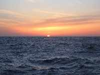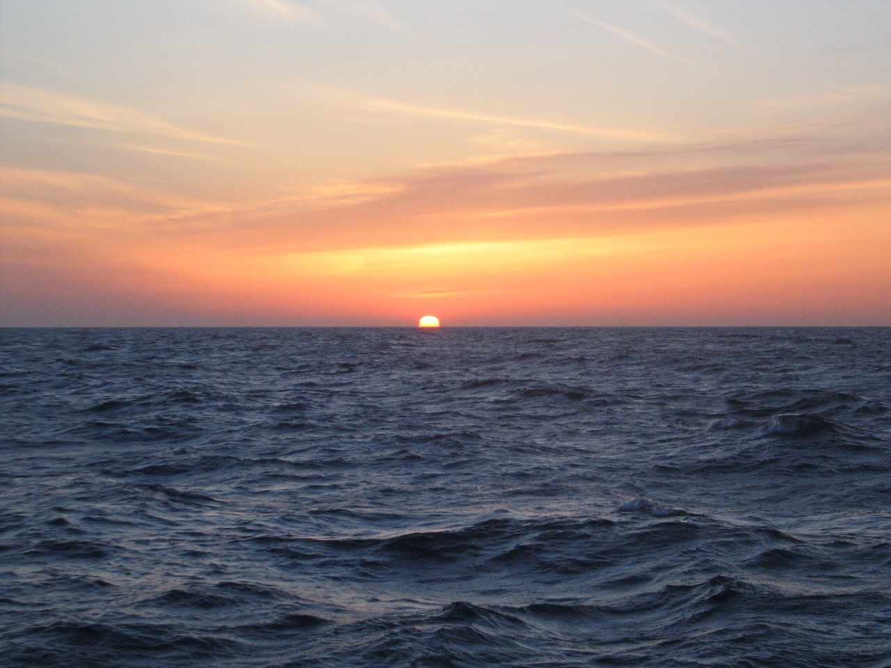 Dafür hatten wir einen schönen Sonnenuntergang. Die Crew hatte eine unruhige Nacht, da die Leinen nachts mehrfach gerissen sind und die