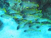 (im Vergleich zu dem, was noch kommen sollte). Kein Großfisch, das übliche Riffgezuppel. Napoleons, Korallen, Drücker, ....
