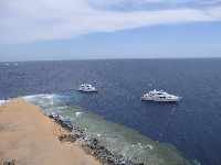 Nach dem Tauchgang konnten wir dann beobachten, wie nach und nach die Tagesboote ankamen. Ein Tauchboot hat die Taucher schmerzfrei